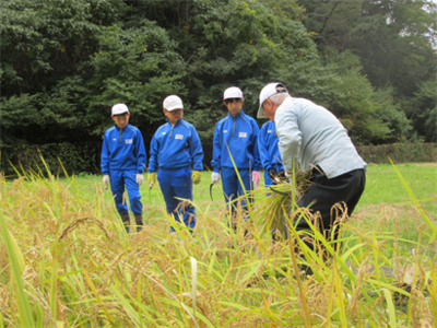 地域づくりセンター、地域づくり協議会、地域の皆様のご協力により、今年も5年生が「稲刈り」を体験させていただきました。はじめは鎌の使い方にも戸惑いが見えましたが、慣れてくるとともに刈り取るスピードもはやくなり、時間内に全ての作業を終えることができました。しばらくの間、天日干しをしてより美味しく仕上げていただきます。