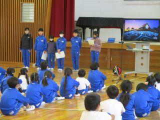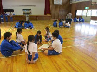現在、後期人権集中学習期間です。今日は、企画委員会が計画したなかよし集会がありました。縦割り班のみんなで協力しながら、スリーヒントクイズやなぞなぞに答えることができました。最後に、先日行われたいじめ防止フォーラムの報告がありました。